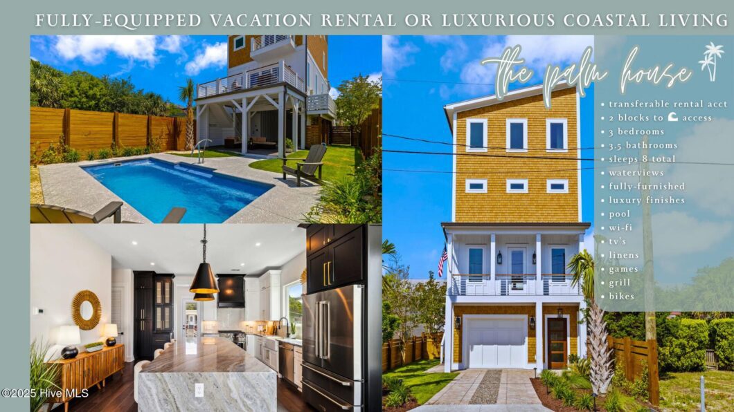 Sold Stunning New Construction with Panoramic Water Views in Carolina Beach, NC | whether you’re looking for your primary residence, vacation getaway, or high-return investment property, this home checks all the boxes + more. Let me explain why. Design Home Renovations, a local family-owned team, known for superior craftsmanship and attention to detail, built this exceptional coastal residence offering over 2,300 square feet of thoughtfully designed luxury in one of Carolina Beach’s most desirable locations. Enjoy panoramic water views while being just two walkable blocks to toes in the sand. This modern coastal retreat features a bright, open-concept main living area, highlighted by a gourmet kitchen with a large waterfall-edge island, high-end appliances, and designer finishes… ideal for everyday living and entertaining. Step outside to experience true island living with multiple expansive decks and balconies to capture ocean breezes and vibrant sunsets. The private backyard oasis includes a sparkling saltwater pool, professional landscaping, outdoor shower, and ambient lighting for relaxed evenings or lively gatherings. Adjacent to the outdoor space, a versatile covered area opens directly to the garage, creating an ideal spot for a pool table, outdoor television, or any type of entertainment setup. Whether you’re watching boats pass by, relaxing poolside, or hosting guests with sunset views, this property blends modern comfort with coastal elegance. Don’t miss the rare opportunity to own a move-in ready masterpiece in Carolina Beach.